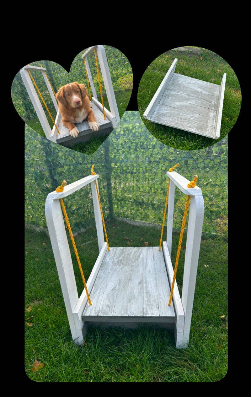 Een goede functionele werpkist en puppyren zijn zeker geen overbodige luxe als fokker. U kan deze volledig naar wens bij ons bestellen en laten maken in hout of aluminium. Als fokker ben ik zelf ook steeds op zoek naar nieuwe mogelijkheden om onze pups zo goed mogelijk te socialiseren en voor te bereiden op hun leven in de grote wereld bij hun nieuwe gezin. En hoewel uitstapjes leuk zijn begint alles toch al de eerste weken binnenshuis of in de tuin. Puppy toestellen bieden hier een mooie extra uitdaging voor uw pups. Wij hebben een standaard assortiment bestaande uit een wip, wiebelplank en evenwichtsstep. Maar ook een puppy hangbrug kan u op maat gemaakt van uw ras bij ons bestellen. Verder staan we open voor al uw voorstellen.